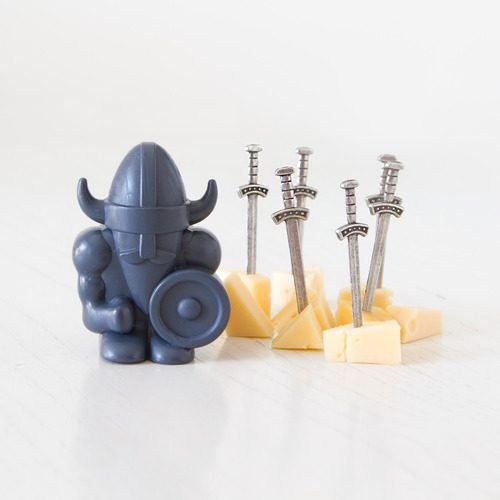 Un Vikingo cargado de 6 espadas de metal, para compartir con nobles amigos unas nobles picadas.