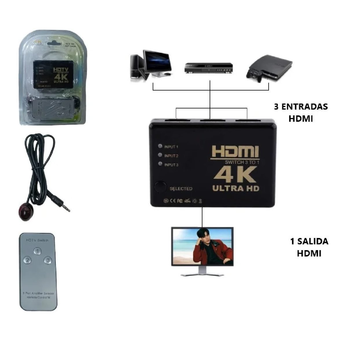 Adaptador Hdmi multiplicador de 3 puertos Hdmi 4k Ultra Hd