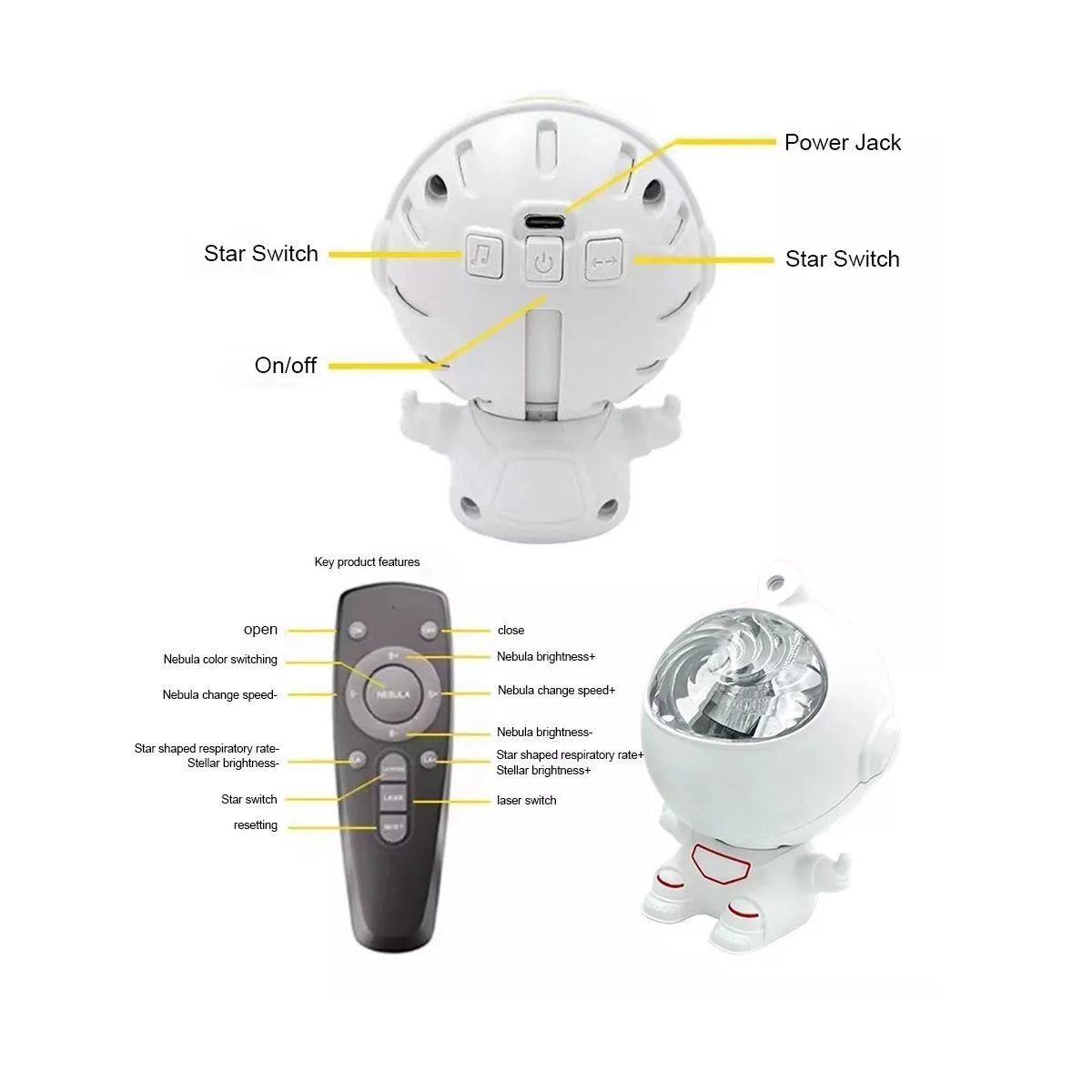 Astronauta led proyector nebula galaxia estrella