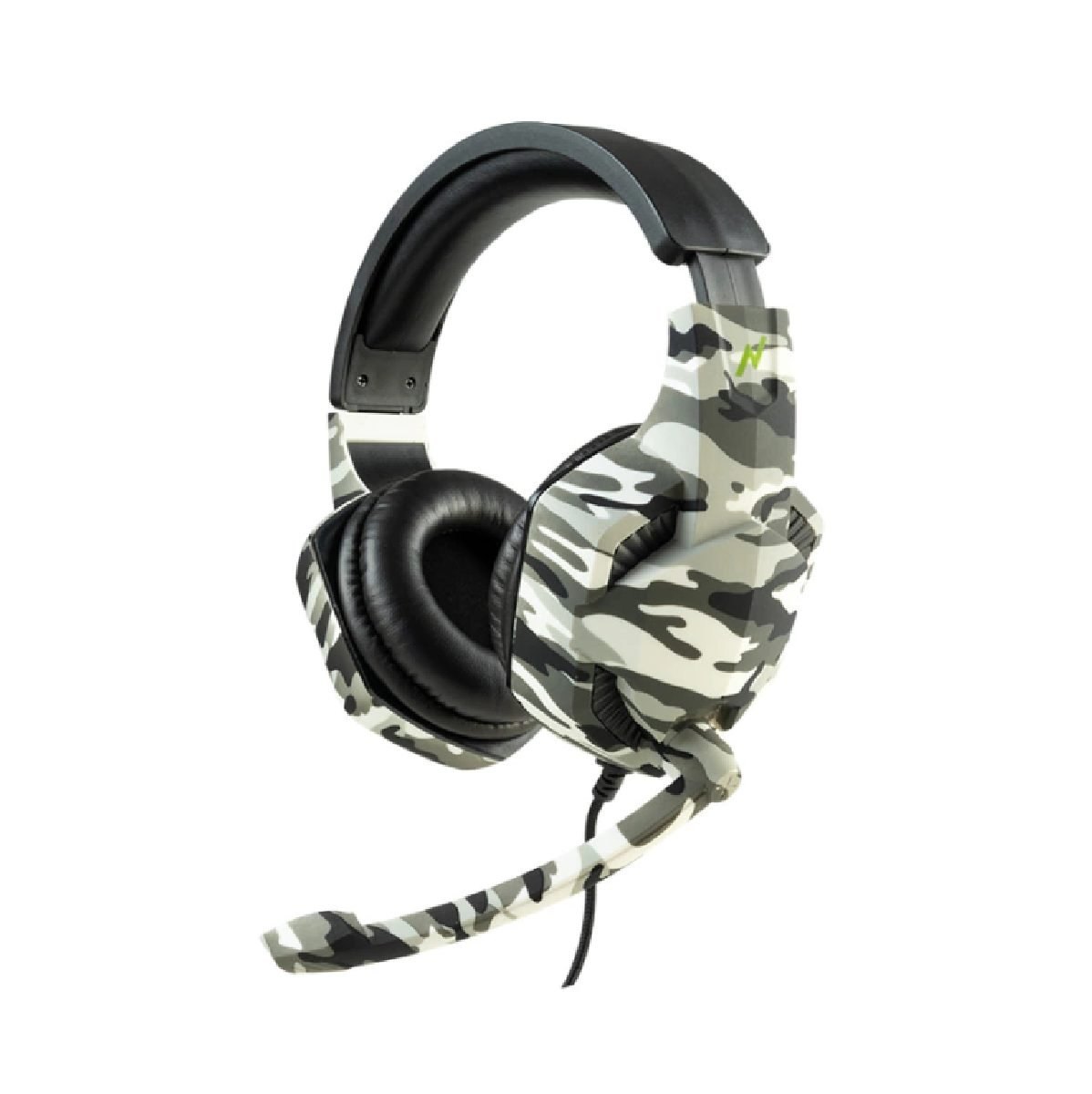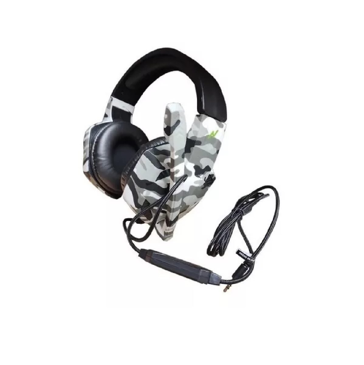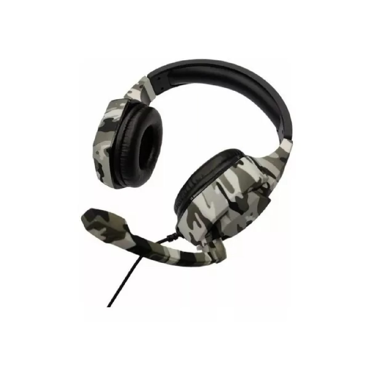 Auricular gamer over ear. Diseño Gamer de avanzada tecnologìa en color camuflaje con vincha ajustable y acolchado con reduccion pasiva de ruidos. Sonido envolvente con bajos potentes. Drivers dinamicos de 40 mm. para mayor potencia de sonido. Microfono omnidireccional con giro de 135 grados. Control de volumen en cable. Conexion miniplug 3.5 mm TRRS compatible con Smartphones y Consolas.