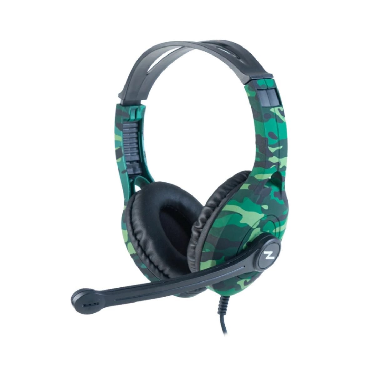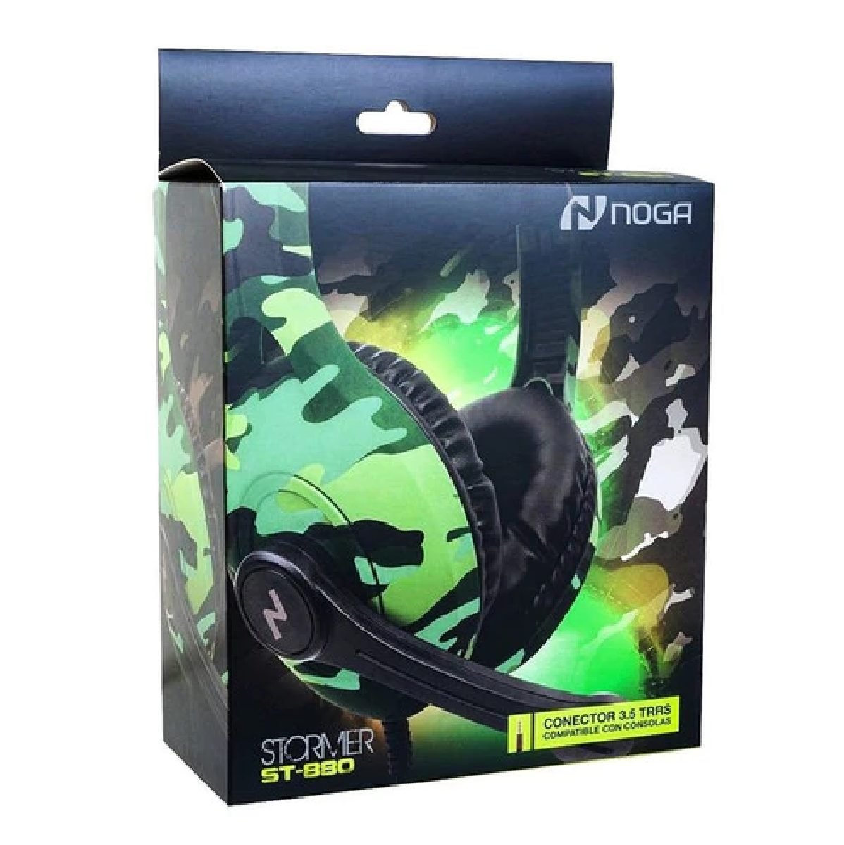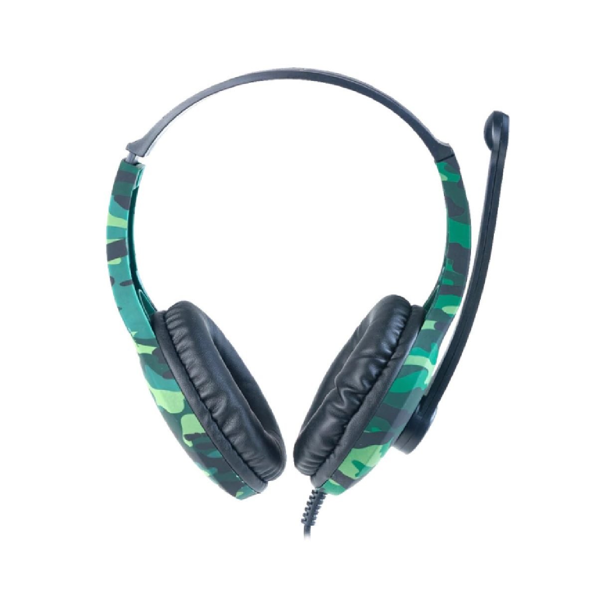 Auricular gamer over ear. Diseño Gamer de avanzada tecnologìa en color camuflaje con vincha ajustable y acolchado con reduccion pasiva de ruidos. Sonido envolvente con bajos potentes. Drivers dinamicos de 40 mm. para mayor potencia de sonido. Microfono omnidireccional con giro de 135 grados. Control de volumen en cable. Conexion miniplug 3.5 mm TRRS compatible con Smartphones y Consolas.