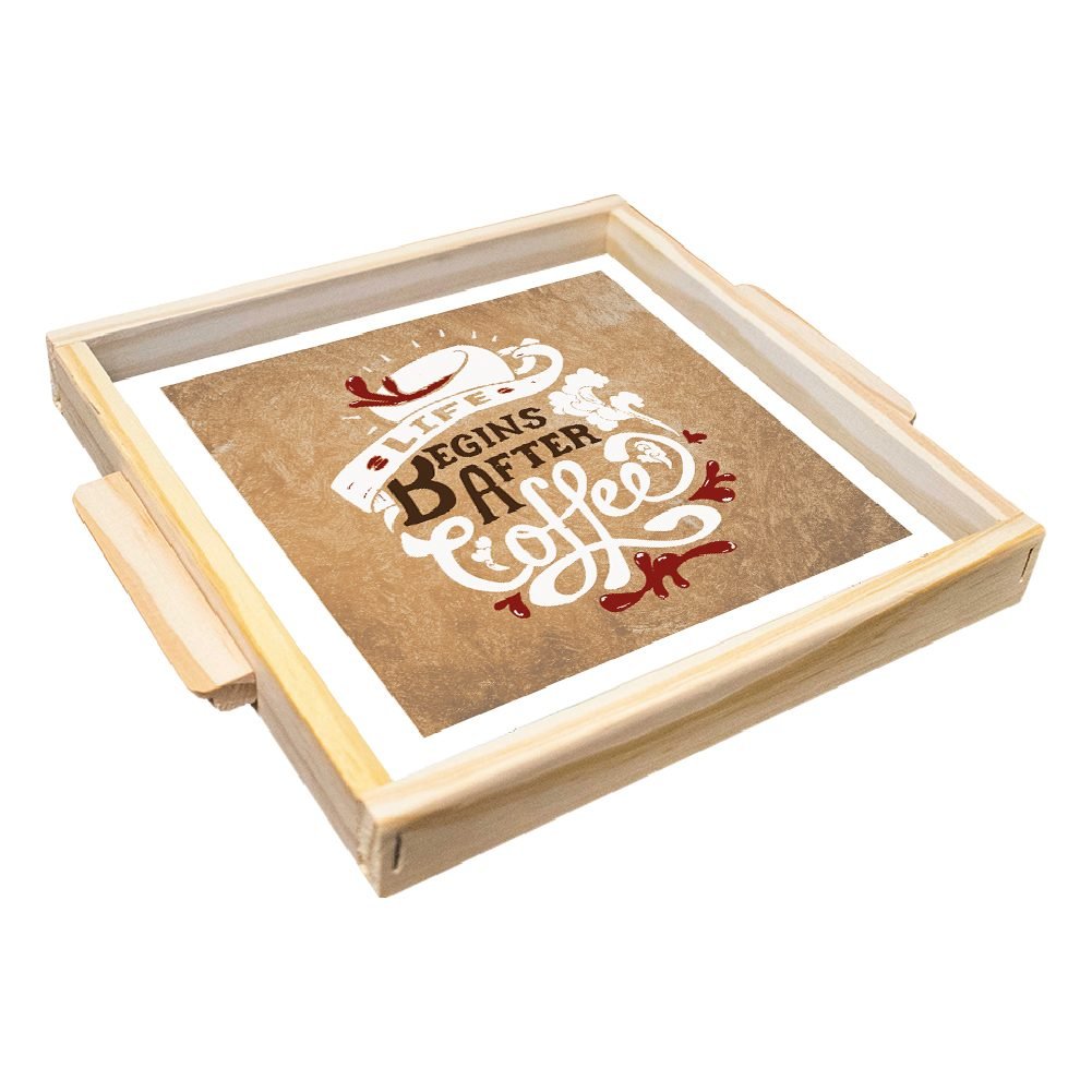 Bandeja desayunadora de madera «life begins after coffee»