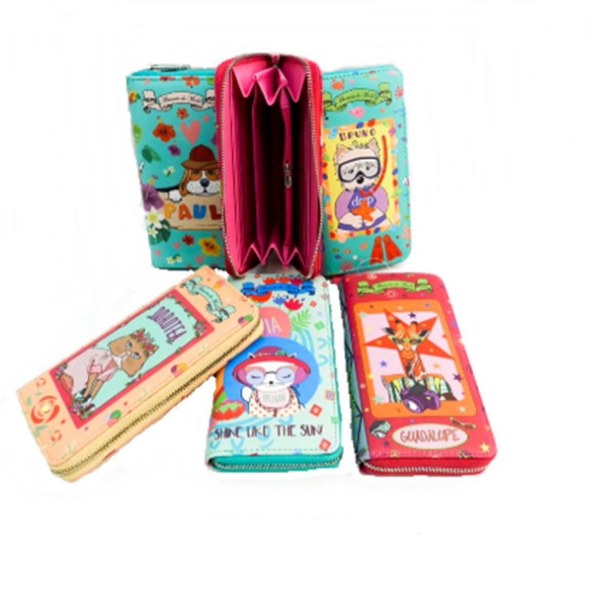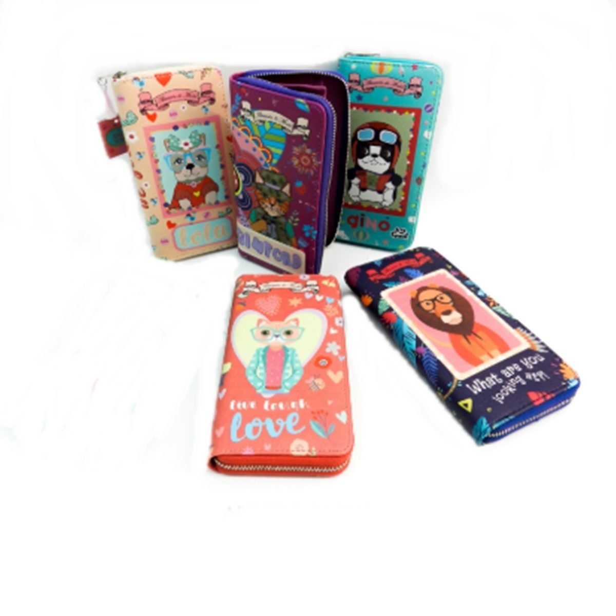 Billetera rectangular con cierre lateral, el espacio perfecto para billetes tarjetas de crédito y documentos .gran variedad de estampas.