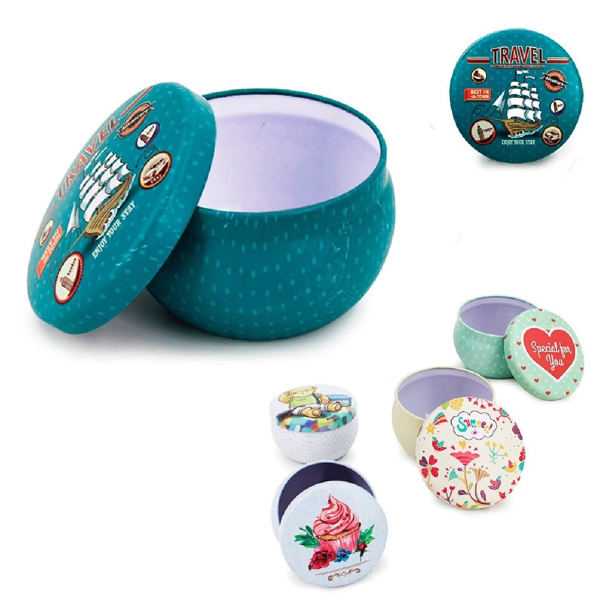 Cajita de metal redonda con diseño para guardar alhajas o lo que usted desee.