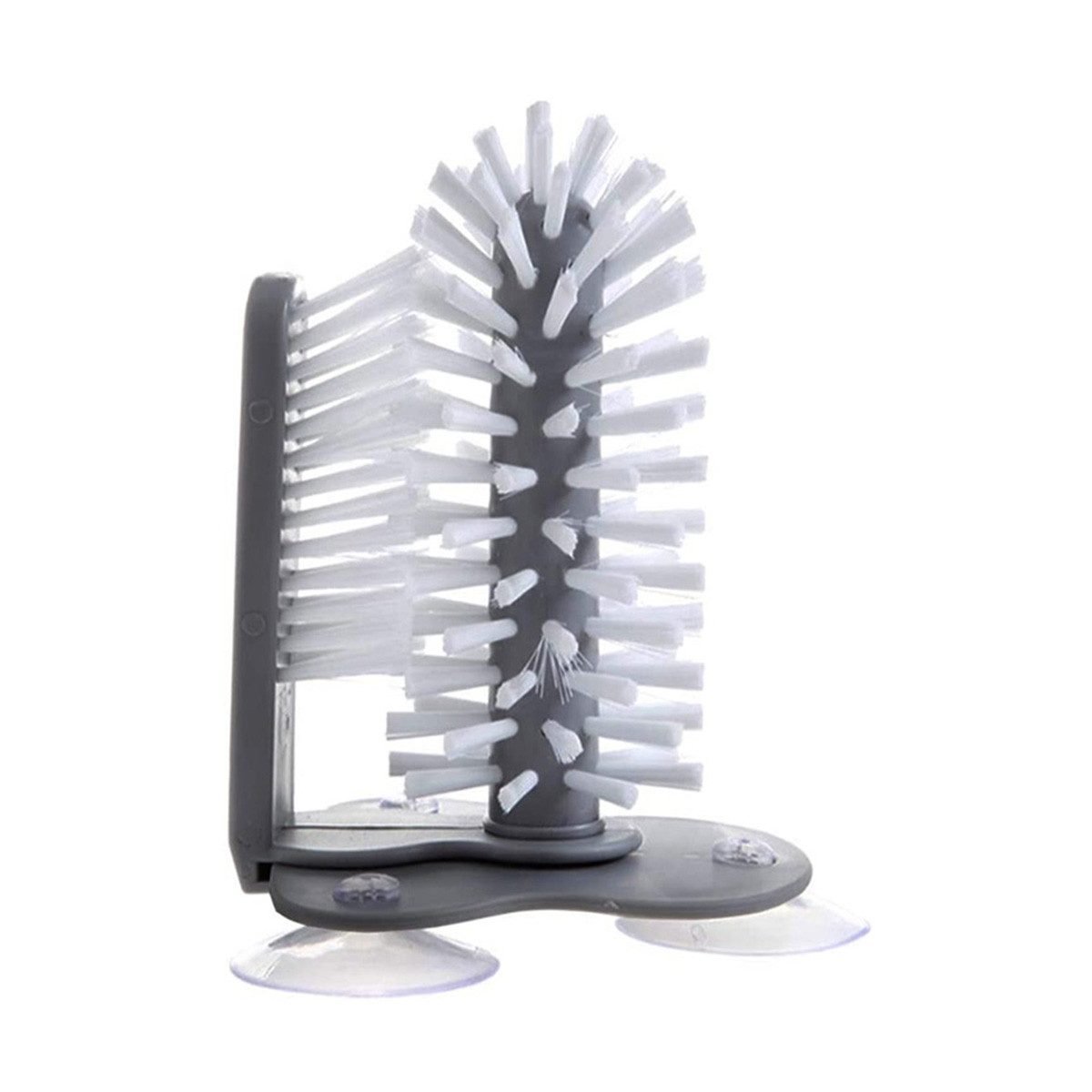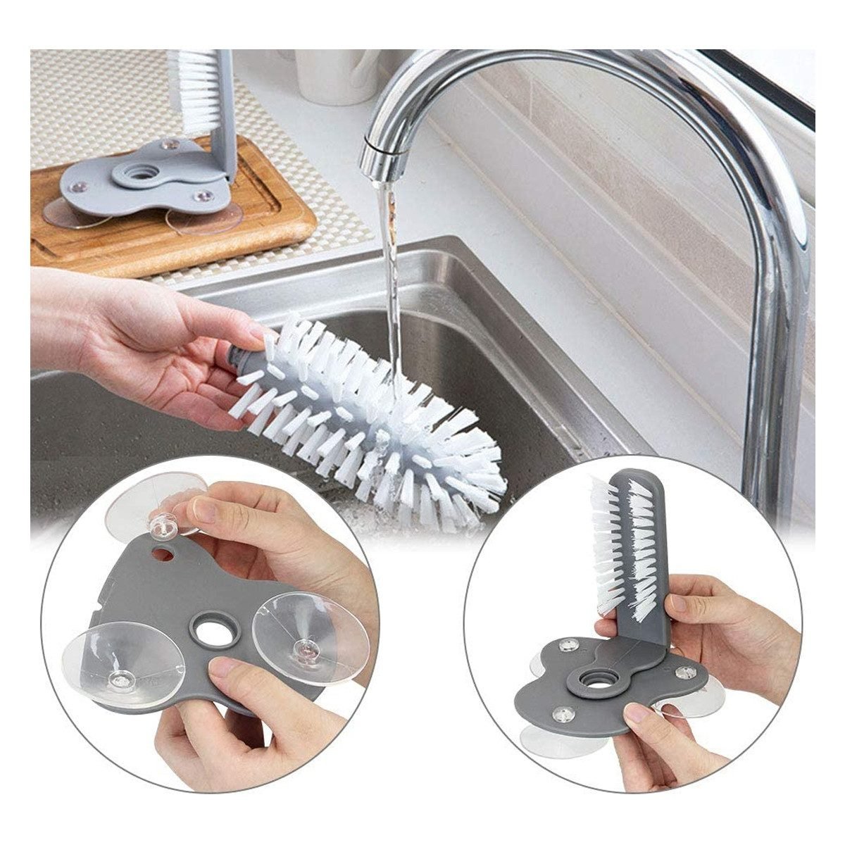 Con doble cepillo para limpiar por fuera y por dentro a la vez. Incluye sopapas para adherir a la bacha o mesada. Se desarma para una facil limpieza. Diametro del cepillo principal: 7 cm.
