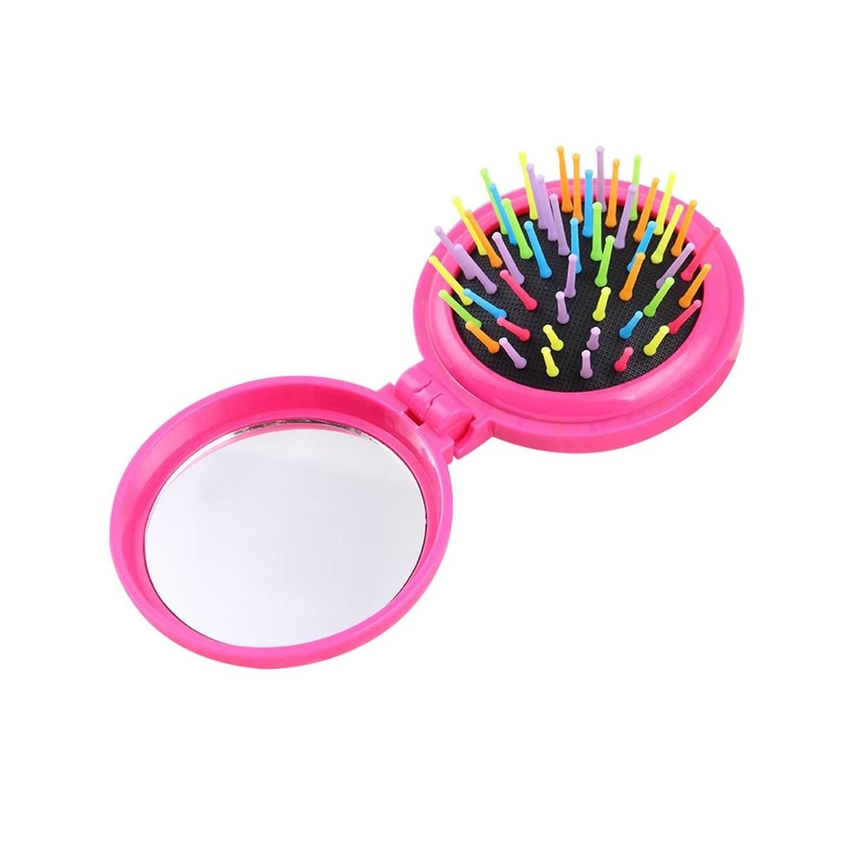 Practico espejo + cepillo con pinches de colores! El cepillo cuenta con una base de goma para poder guardarlo. Ideal para la cartera o el bolso de viaje