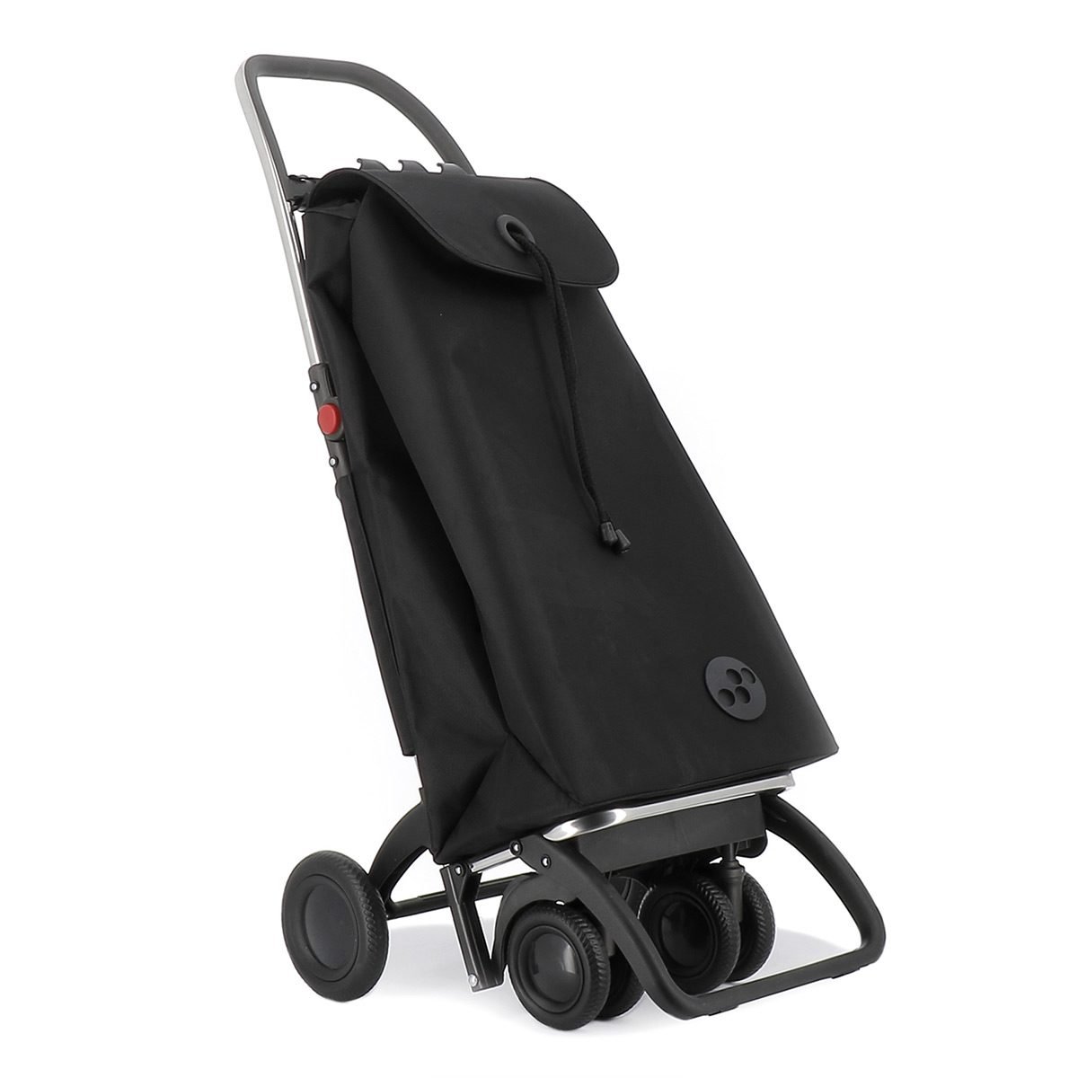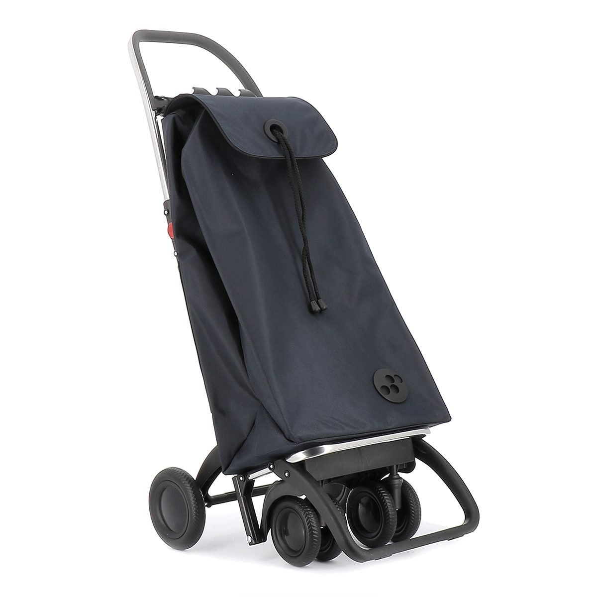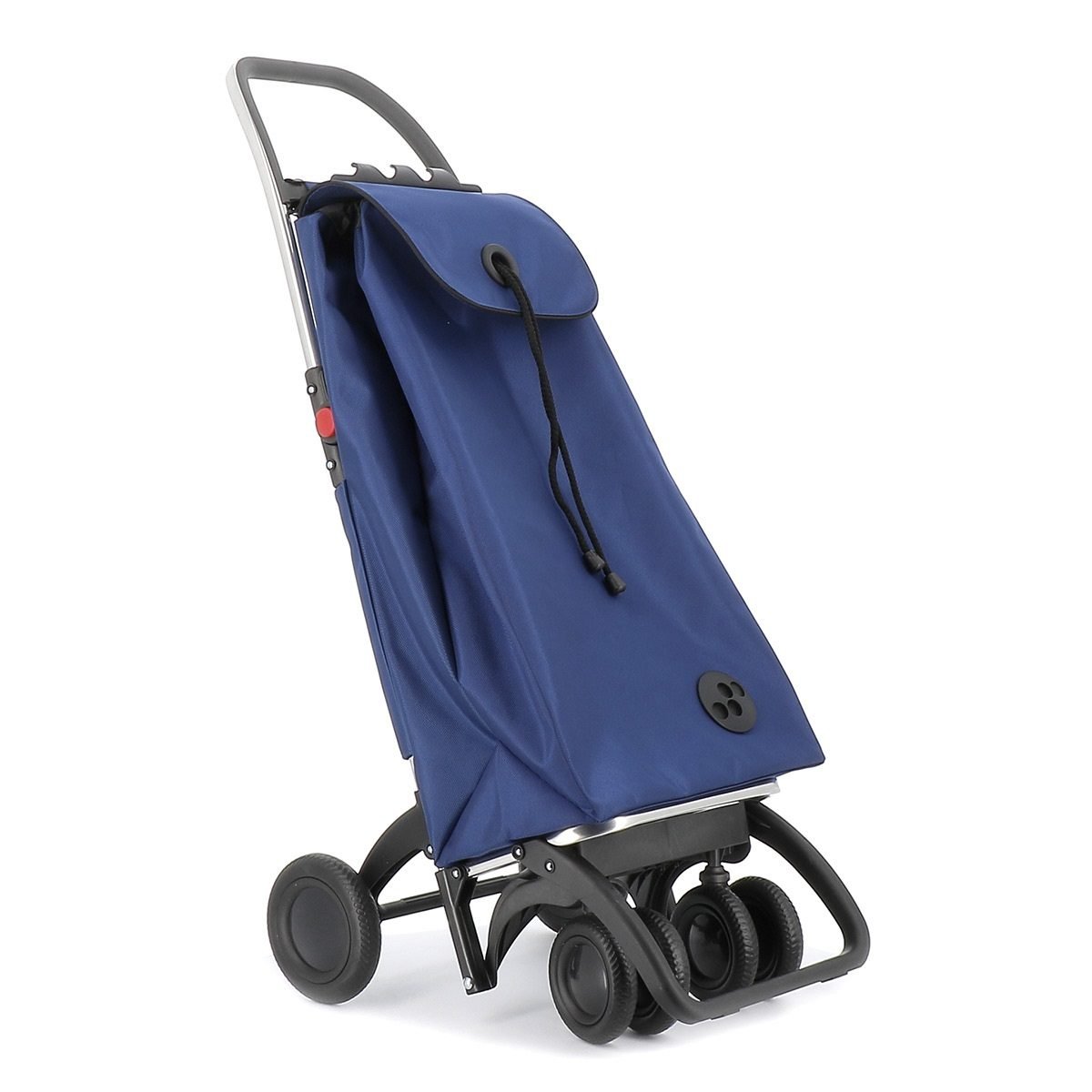 Carro de aluminio de 6 ruedas, ideal para subir escaleras sin fuerzo. Armazón con pieza para sujetar y proteger la bolsa. Bolsa de gran capacidad, doble bolsillo interior, ojal en la solapa para pasar el cordón y bolsillo trasero con cremallera.