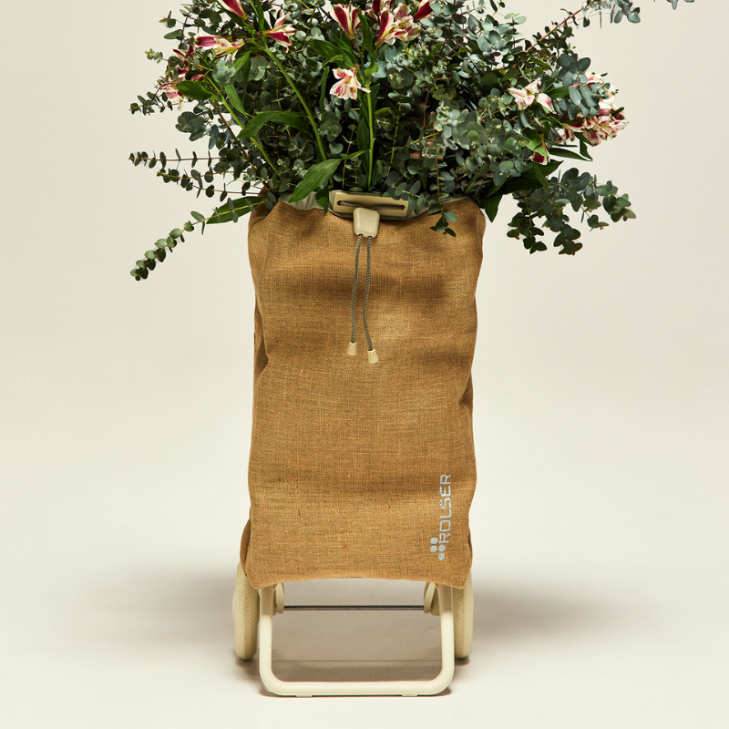Carro Rolser de aluminio de 2/4 ruedas, para evitar cargas innecesarias. En posición de dos ruedas para llevar detrás cuando está vacío, y empujando delante cuando está lleno con 4 ruedas. Chasis con apoyo delantero y base inferior abatible para guardar en espacios pequeños.