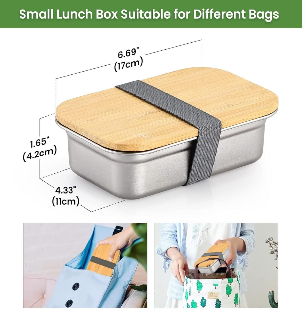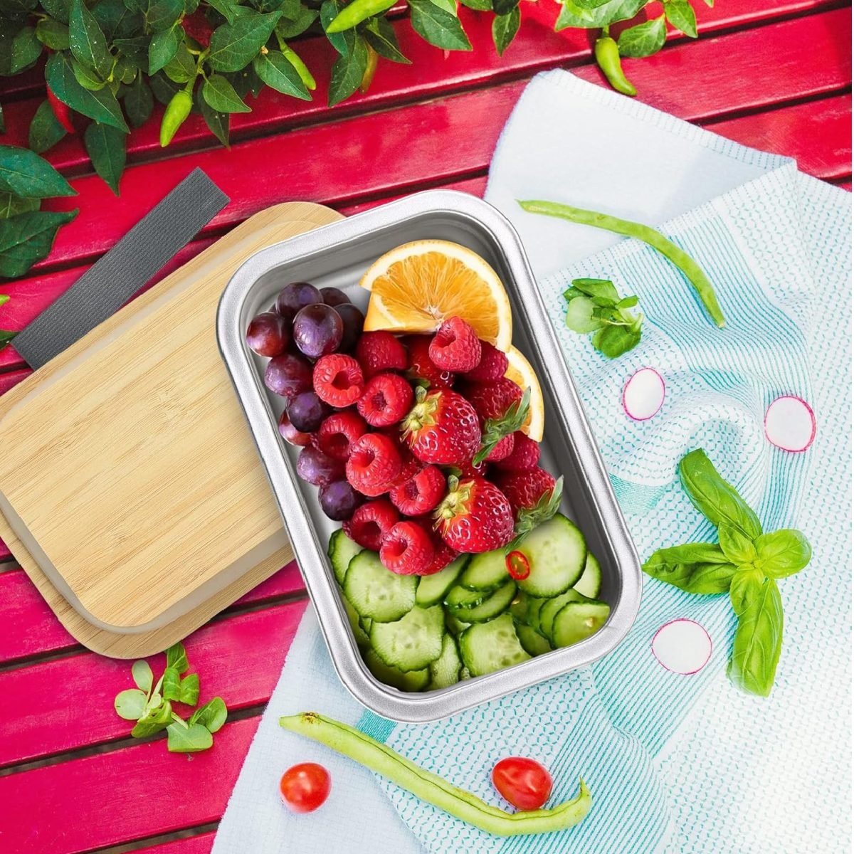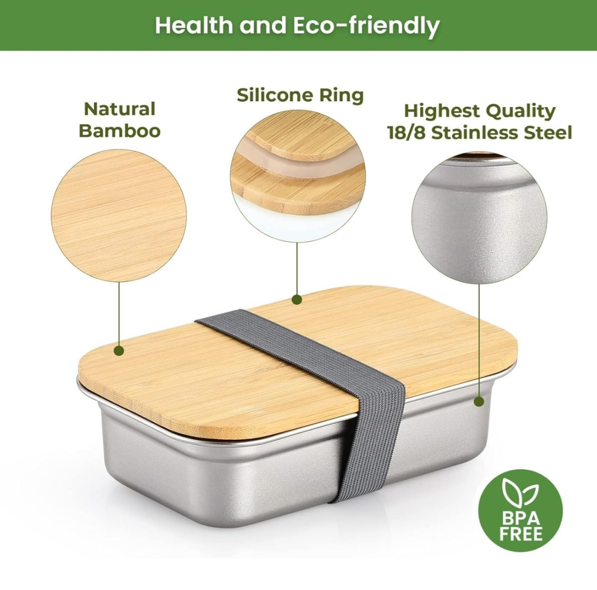 Materiales ecológicos: hecha de acero inoxidable de alta calidad y bambú natural, nuestra lonchera está libre de productos químicos nocivos y es muy duradera.