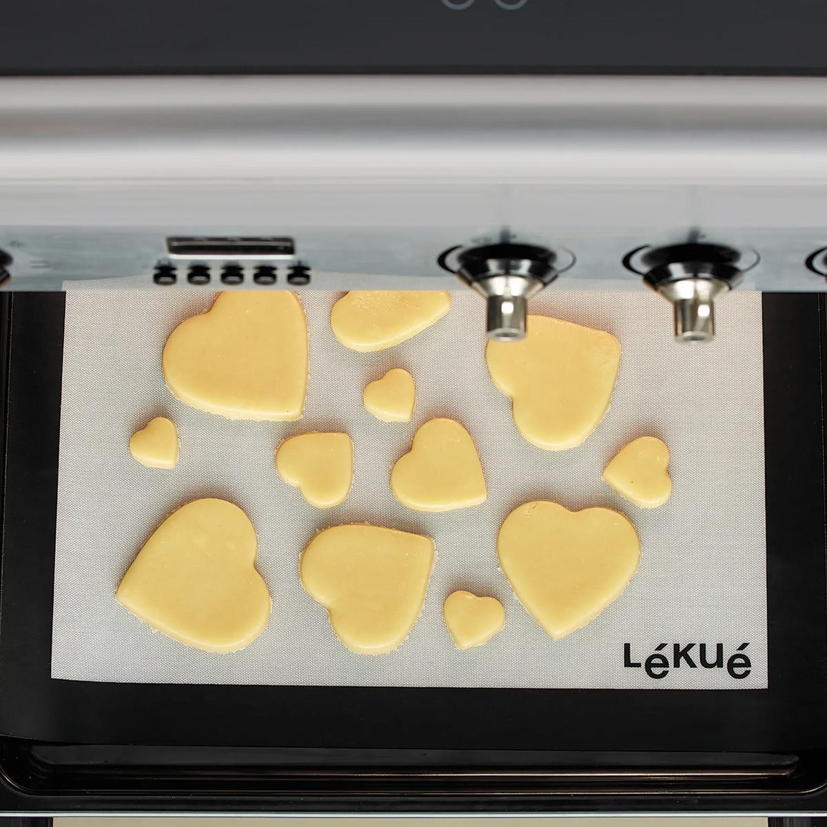 Regala corazones de forma rápida, sencilla y original. Un único molde con 12 figuras de corazón en él para poner sobre la masa de una sola vez y tenerlas listas para meter al horno.