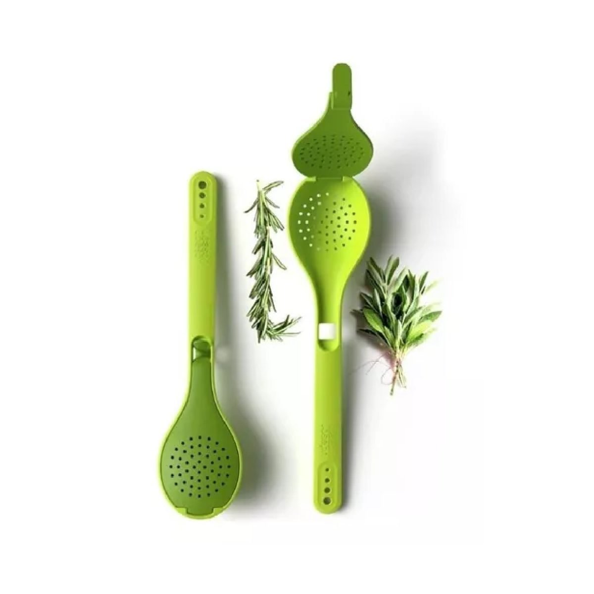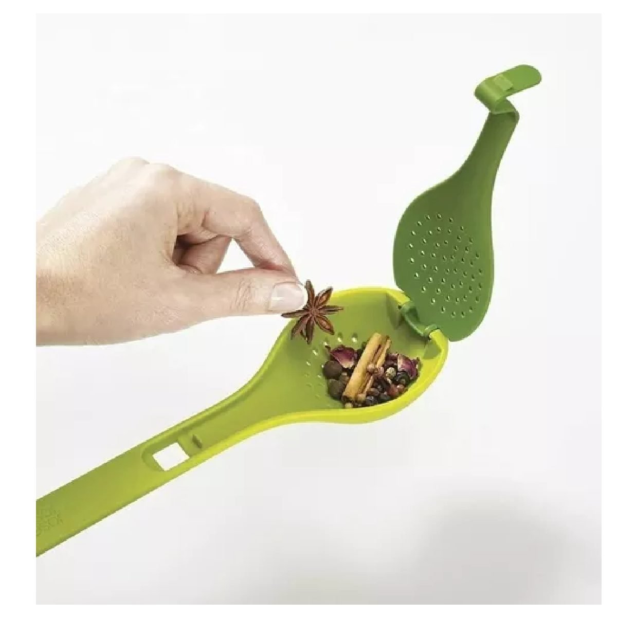 Tiene unos agujeritos por los que se permite la salida de los aromas y sabores de hierbas aromáticas y especias que se introduzcan en ella, de modo que al terminar de cocinar un curry o cualquier otro guiso aromatizado, se puede retirar sin tener que estar ‘pescando’ en el caldo, ramitas, bayas, vainas.
