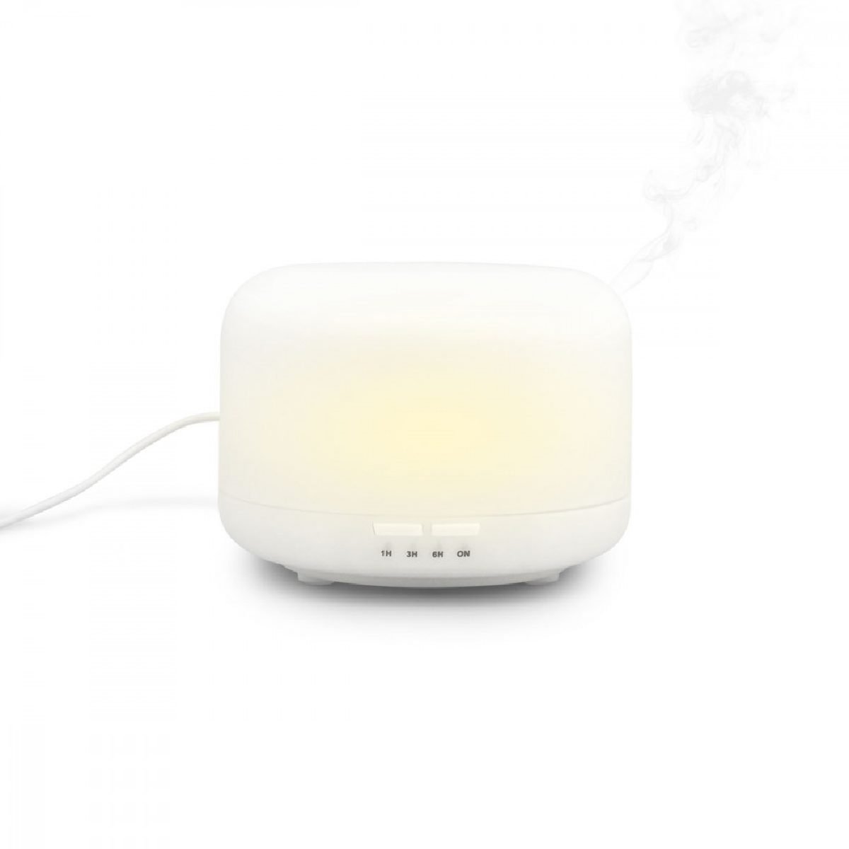 Modo de uso: Llenar de agua a temperatura ambiente hasta la marca máxima y agregar 2 ó 3 gotas de aceite esencial. Cerrar la tapa y presionar el botón derecho para activar el vapor. Para configurar el tiempo presionar repetidamente: 1, 3 y 6 horas. Presionar el botón izquierdo para encender la luz, presione una segunda vez para cambiar la intensidad. Cuando se agote el tiempo elegido, se apagará automáticamente. No abrir ni mover mientras esté encendido.