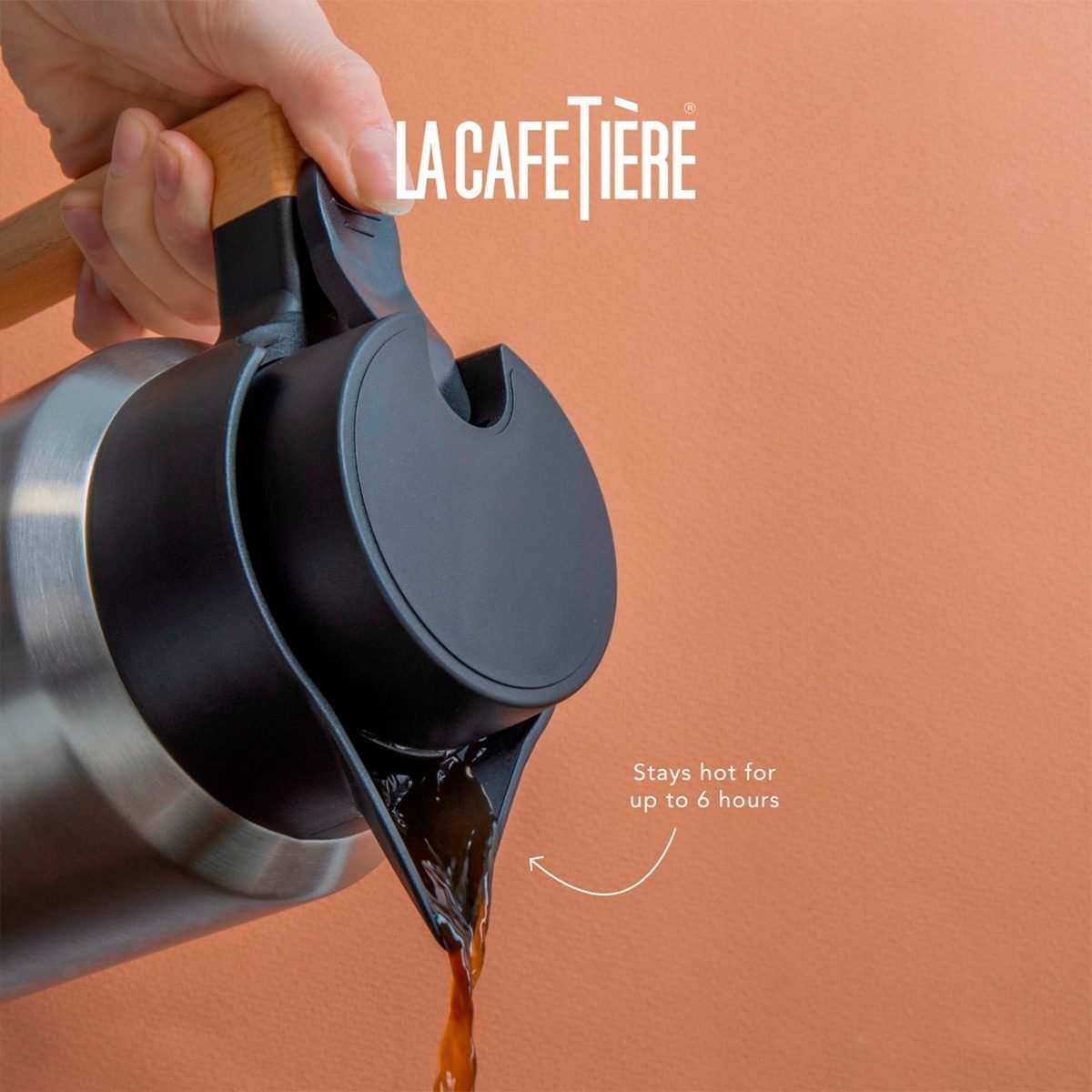 Esta jarra con aislamiento al vacío de La Cafetière está diseñada para mantener las bebidas calientes durante más tiempo. Fabricada en acero inoxidable de alta resistencia, la jarra de doble pared conserva la temperatura hasta 6 horas. Mientras las bebidas se mantienen calientes en todo momento, el asa de madera de haya pulida con arena se mantiene fría al tacto. La tapa de plástico y el botón se manejan fácilmente con una sola mano. Para utilizarla, primero caliente la cafetera añadiendo agua hirviendo, desechándola al cabo de un minuto. A continuación, coloque las bolsitas de café o té en la cafetera, añada agua hirviendo y deje infusionar durante un par de minutos hasta que esté listo para servir.