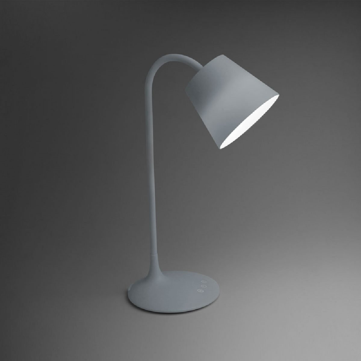Lámpara led con brazo flexible, conexión y carga USB. Tiene batería interna, regulador de intensidad y tres modos de luz para elegir según el uso.