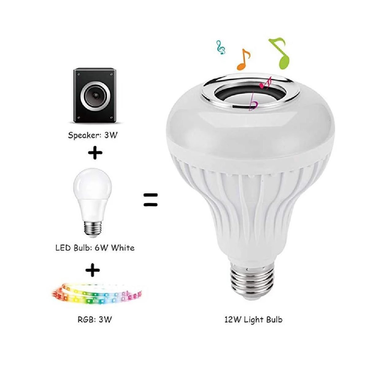 LAMPARA LED RGB FOCO PARLANTE BLUETOOTH CON CONTROL REMOTO.