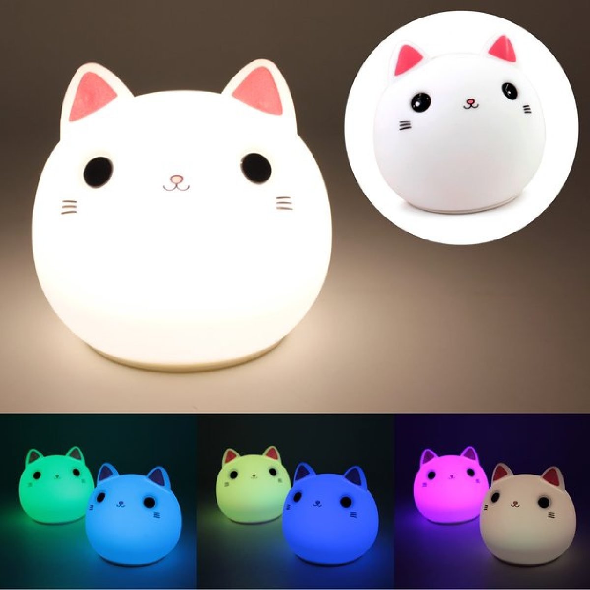 – Lámpara velador gatito redondo.