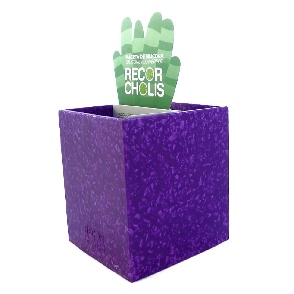 La MACETA CUBO DE RECORCHOLIS está fabricada con 50% de material recuperado de silicona, lo que la convierte en una maceta ECO SUSTENTABLE.