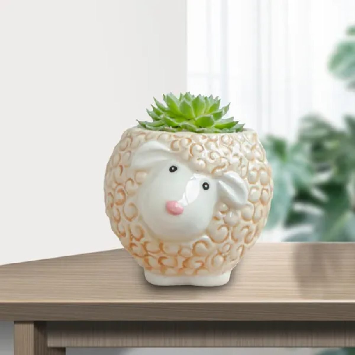Ideal para suculentas o cactus, o como lapiceros. Estas macetas de cerámica esmaltada pintadas a mano con tiernos diseños de oso, panda, vaca, zebra, oveja y elefante, completarán cualquier cualquier rincón bajo la ventana, mesa de oficina u escritorio. Contiene orificio de drenaje para la salud de la planta.