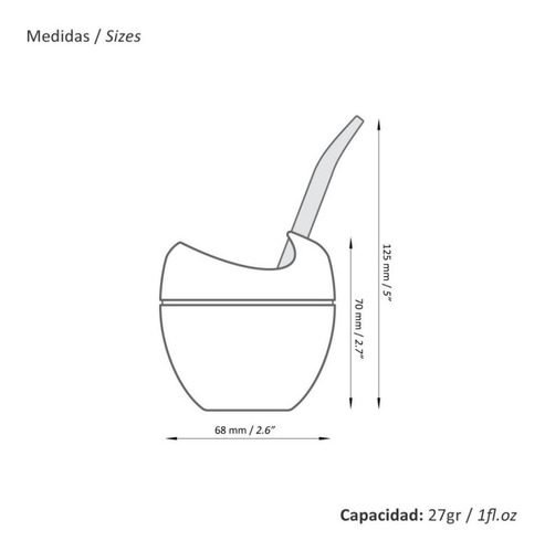 Principalmente innova en su “sistema de vaciado”. No fija gusto ni colores. No fija bacterias. Por último, un punto importante a destacar, es flexible e irrompible, que lo convierte en el mate ideal para transportar. Carga aproximada: 40 gr. de yerba
