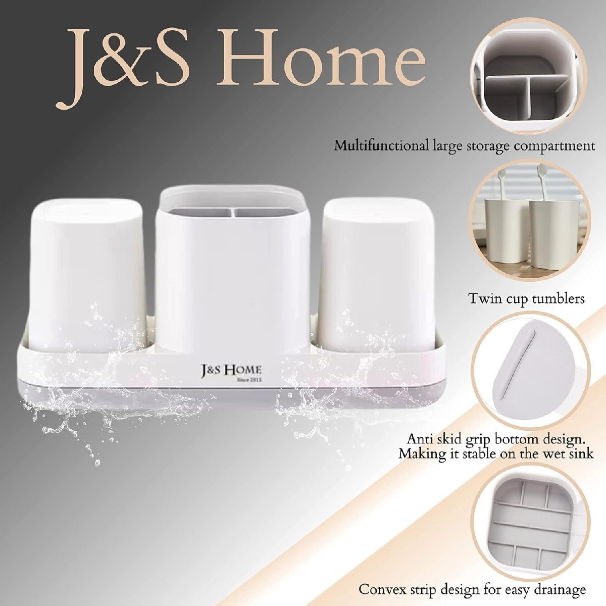 El soporte para cepillo de dientes se adapta tanto a cepillos manuales como electrónicos. Con 2 soportes para vasos de baño que también se pueden utilizar como un soporte adicional para cepillos de dientes o cabezales de cepillo de dientes eléctricos, el soporte ofrece un montón de espacio de almacenamiento para la familia.