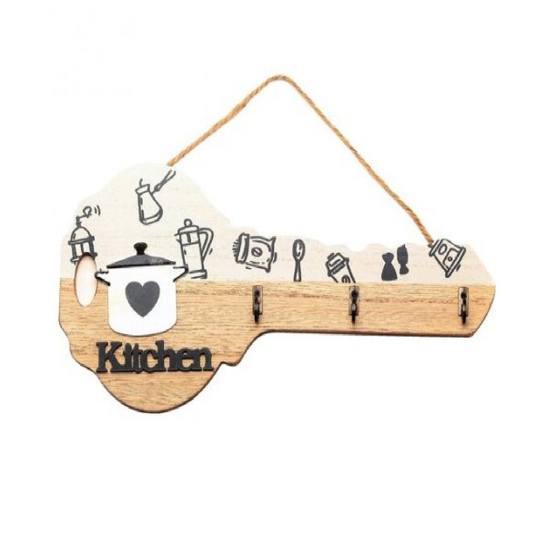Portallaves perchero kitchen de madera con 3 ganchos para no perder tus llaves ni tus barbijos.