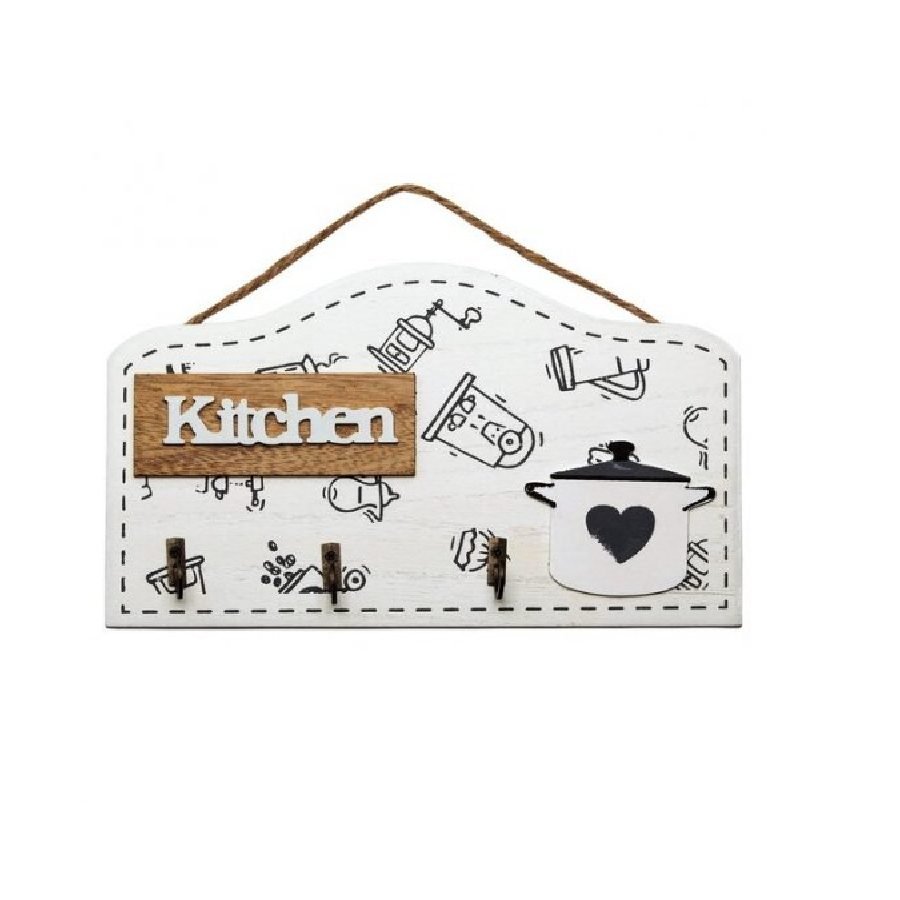 Portallaves / perchero kitchen de madera con 3 ganchos para tus llaves, barbijos o bufandas.
