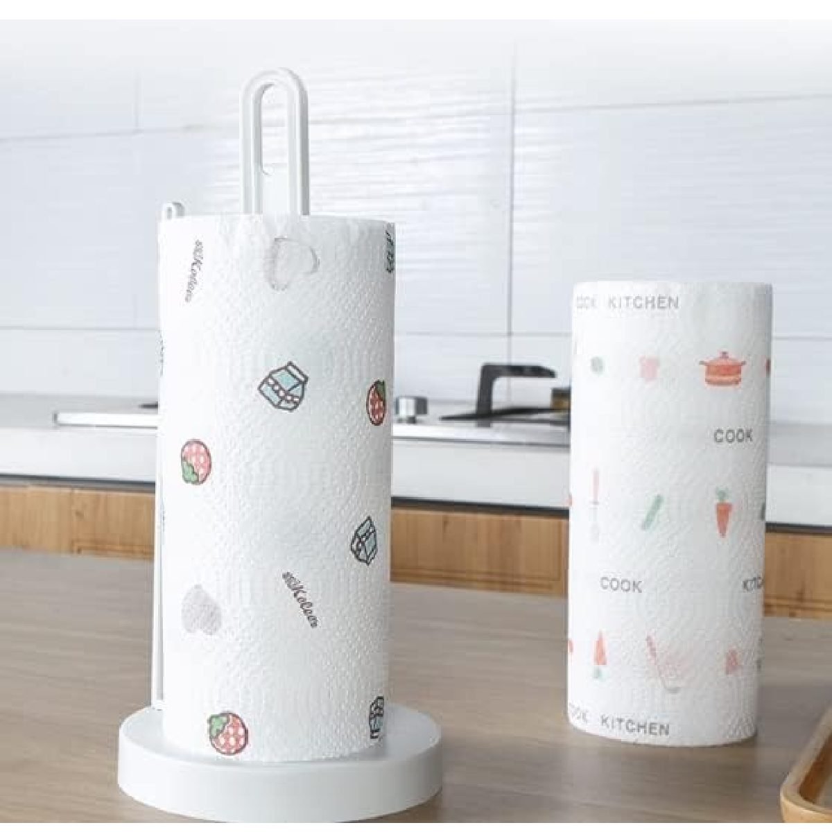 Diseño elegante la estética simple y aerodinámica del soporte para toallas de papel blanco hace que tu encimera de cocina se vea elegante y moderna.