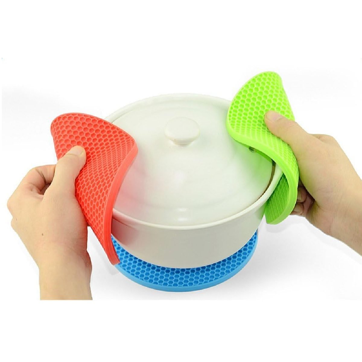 Resistente al calor, los posa fuentes de silicona son resistentes al calor hasta 440 grados F, lo que puede proteger tu mesa de sartenes calientes y ollas. La superficie con textura de panal tiene un buen efecto antideslizante mientras disipa mejor el calor. Seguro para su uso en horno, congelador o microondas.