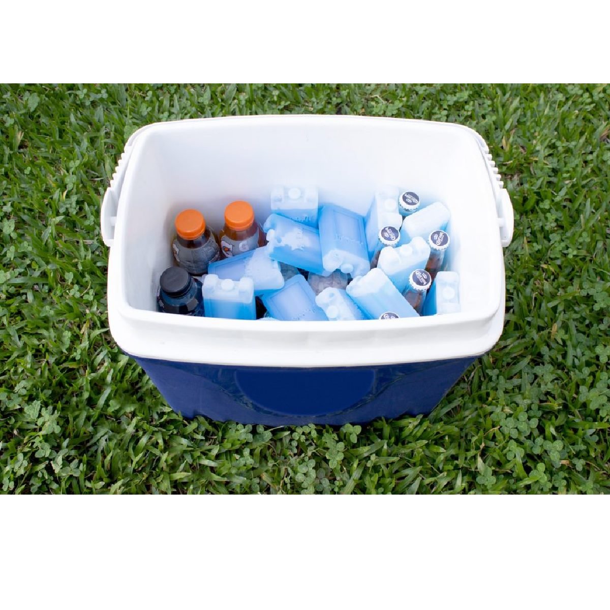 Placa que contiene líquido refrigerante (170 ml) color azul dentro de un estuche plástico. Ideal para refrigerar bebidas, medicamentos o utilizar en neveras viajeras.