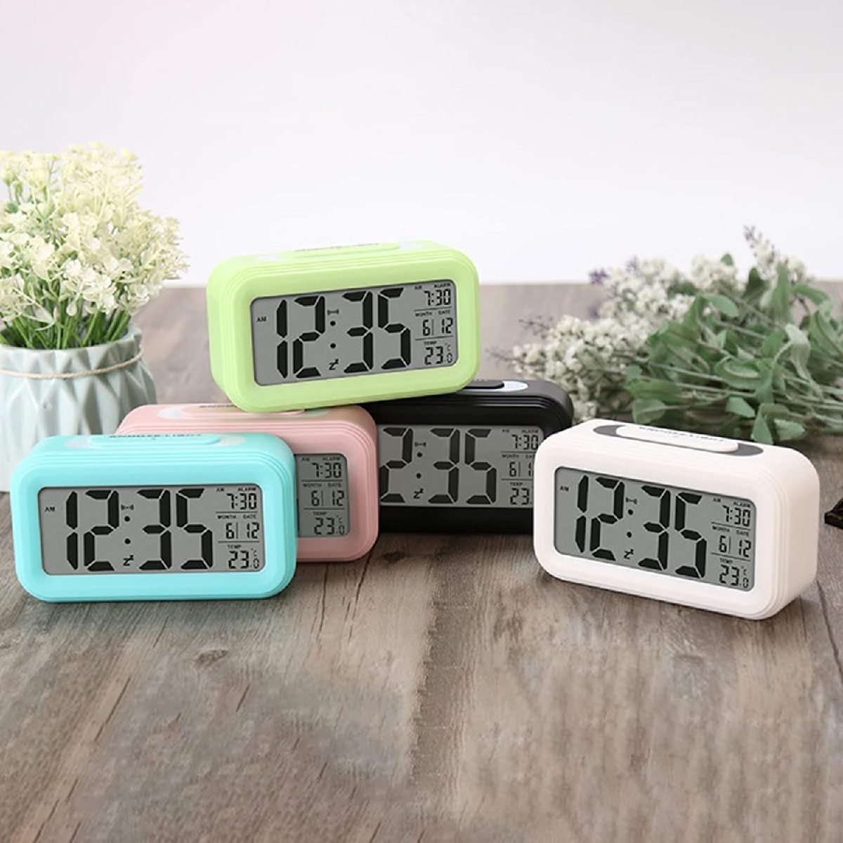 Reloj despertador digital rectangular con alarma