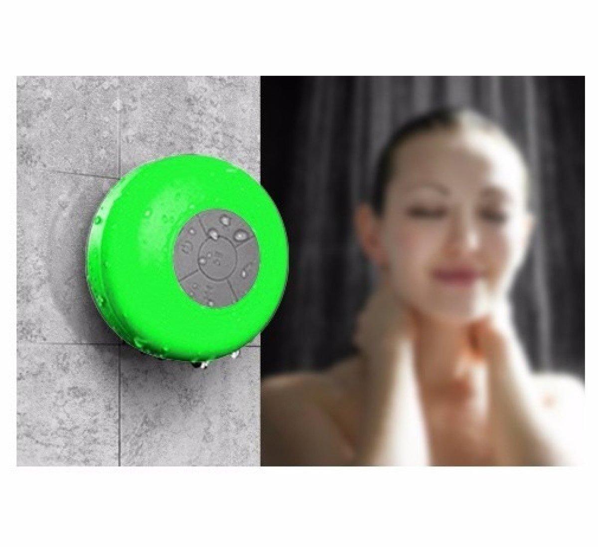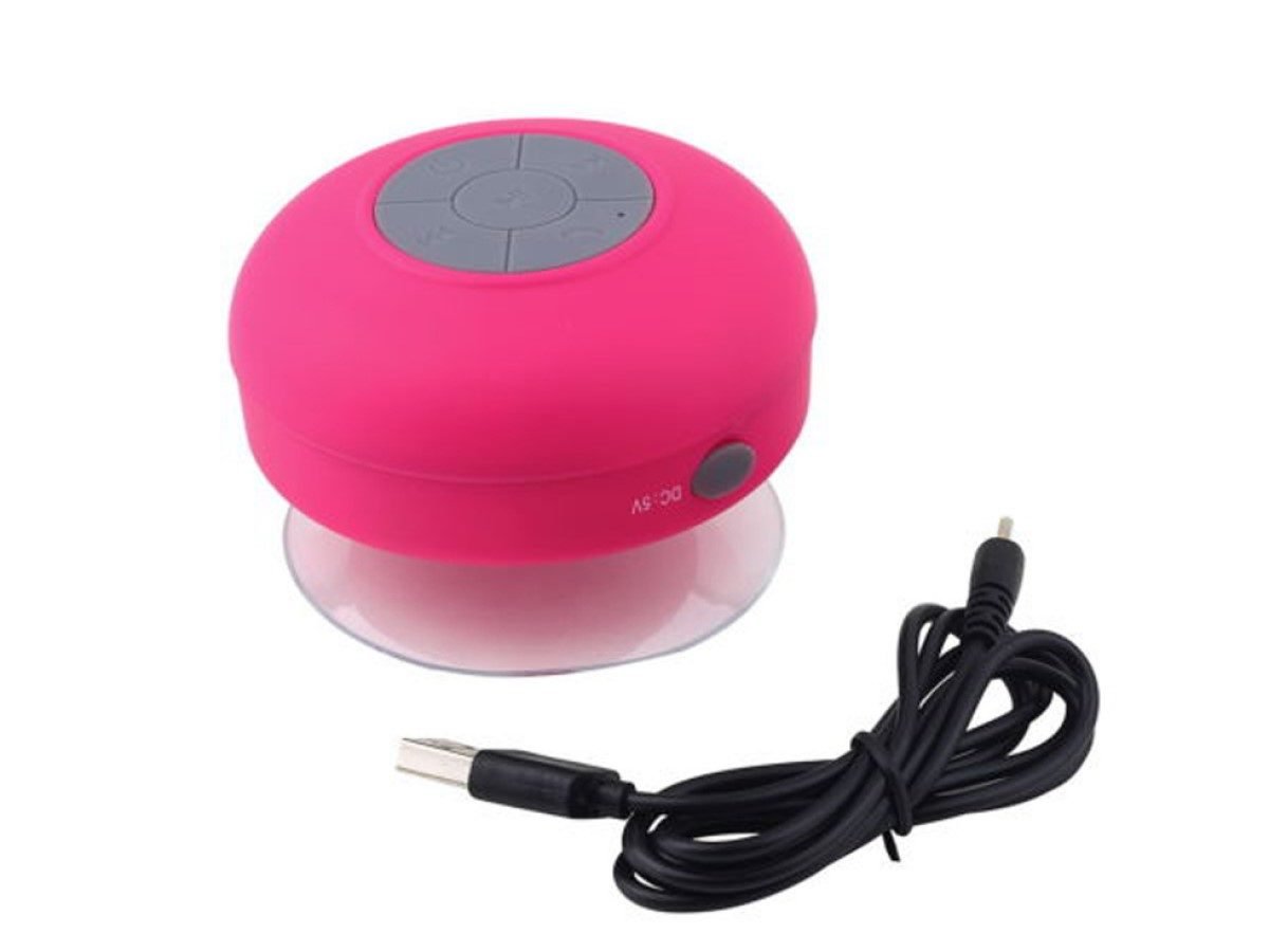 PARLANTE PORTATIL DE DUCHA Bluetooth Recargable – Hasta 10 metros de alcance. – Resistente al agua, No sumergible. – También apto para atender llamadas Telefónicas. – Batería interna recargable vía USB. – Incluye Cable USB para Recarga – Con Ventosa de Sujeción, para adherirlos a Vidrios, espejos, azulejos, etc. – Conexión Bluetooth. CARACTERISTICAS: * MATERIAL: Goma y Plástico * MEDIDAS: 8 cm. de Diámetro x 5 cm. de Alto. * ALCANCE MAXIMO: 10 metros * Reproduce hasta 6 horas