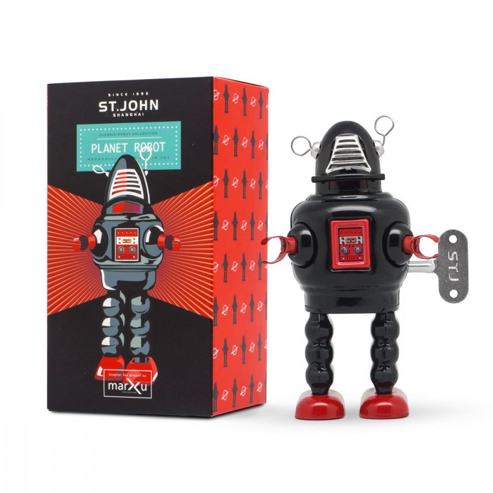 Esta edición especial de PLANET ROBOT es una reproducción del famoso robot de hojalata basado en Robby Robot, el robot de “Perdidos en el espacio”, “La dimensión desconocida” y “El planeta prohibido”. Camina gracias a su mecanismo a cuerda.