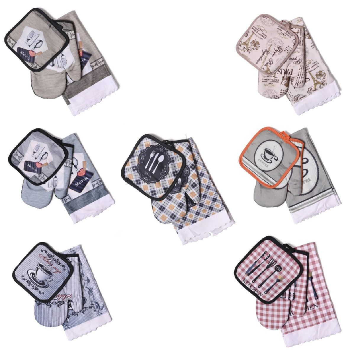 Set de cocina repasador + manopla + agarradera modelo Paris