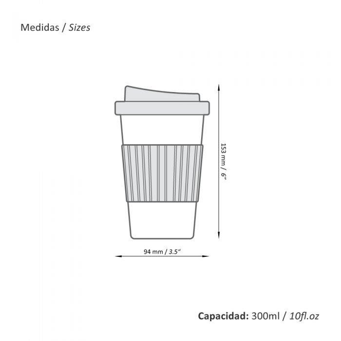 Vaso térmico de doble pared con banda de silicona y tapa a rosca. Mantiene tus bebidas frías o calientes. Capacidad 300 ml. Apto para: microondas y lava vajilla. Material: PP. Libre de BPA.